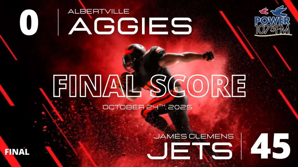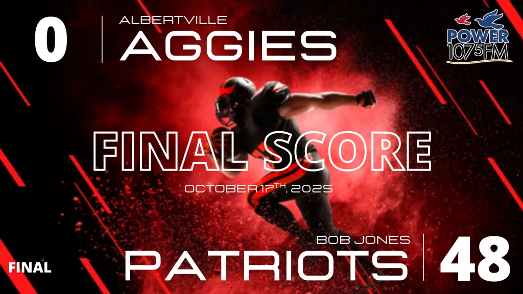 Stay on top of every Albertville Aggies game this season with our complete football schedule below! From the first kickoff to the final whistle, we’ve got you covered with live play-by-play coverage on Power 107.5 FM – Your Home for Albertville Aggie Football. Whether you’re in the stands, at home, or on the go, follow along for game times, matchups, and all the action as the Aggies take the field.